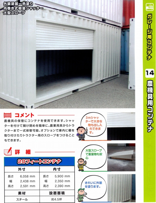 | 20フィート | 外寸 6,058mm 内寸 5,900mm |