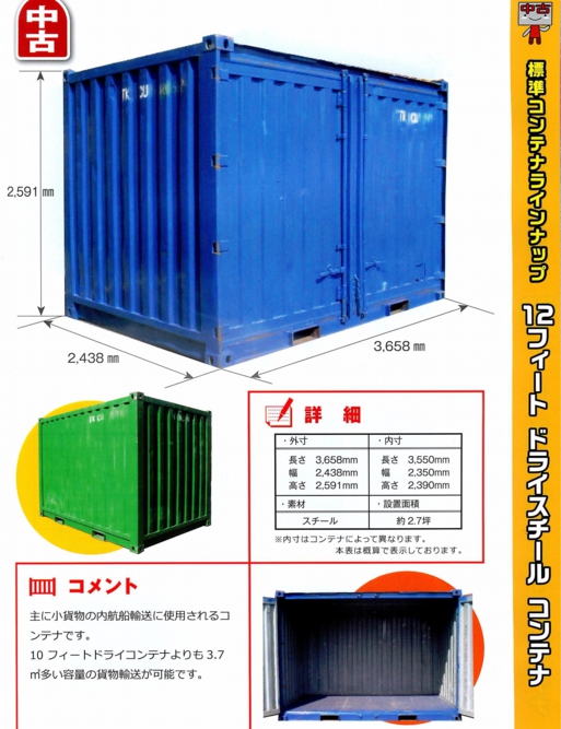 | ※内寸はコンテナにより異なる場合が御座います。本表は概算で表示しております。 ※サイズにより入手が困難な場合も御座いますので、お気軽にお問合わせ下さい。 |
