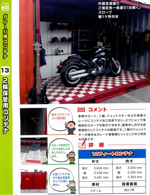コンテナといっても様々なサイズがあります。下記のサイズチャートをご覧ください。