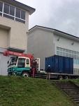 保育園・小学校・中学校と複合した施設に設置させて頂きました。倉庫として使用するそうです。